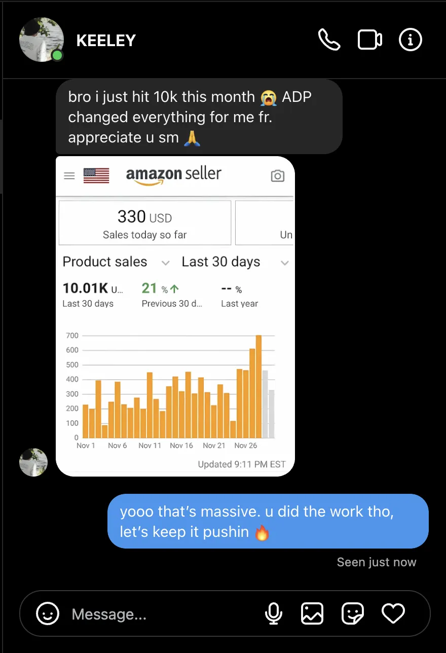 Master the exact product-sourcing frameworks, listing formulas, and fulfillment shortcuts we use to hit $100K+ months — with precision and predictability.